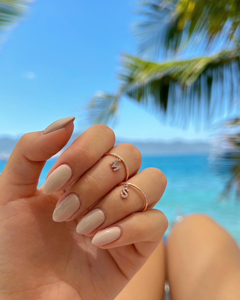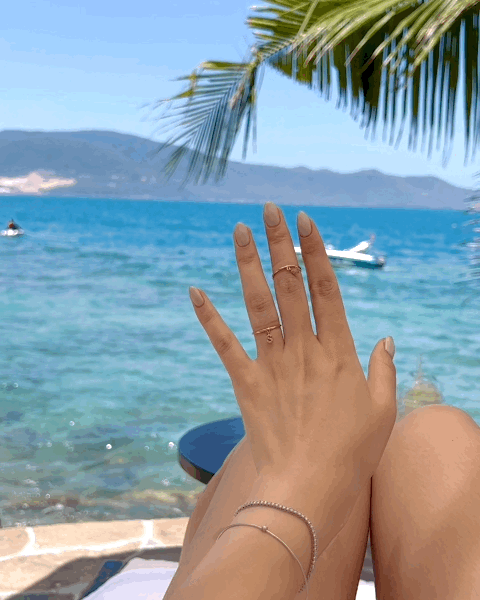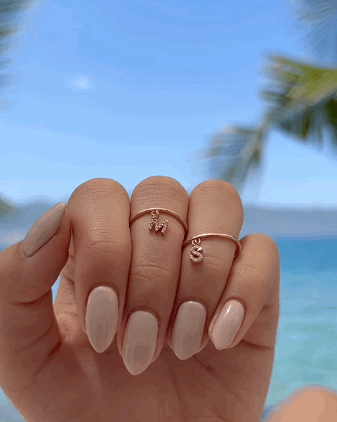 찰랑이는 이니셜 메달이 매력 포인트인 이니셜 드롭 반지에요.